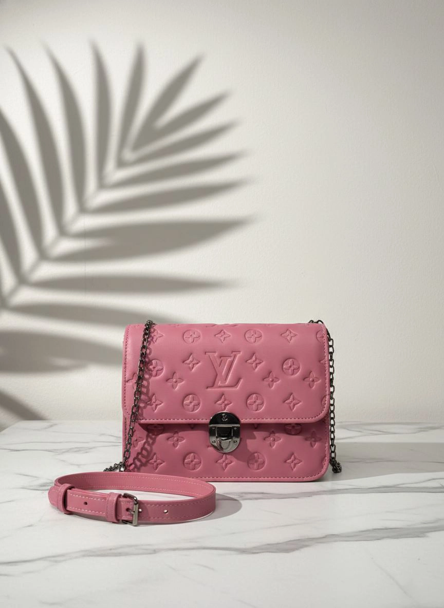 - Design Details: Premium embossed pattern finish Elegant front lock closure Stylish chain shoulder strap Extra adjustable belt strap included Compact yet spacious interior High-quality stitching & material Lightweight & comfortable to carry