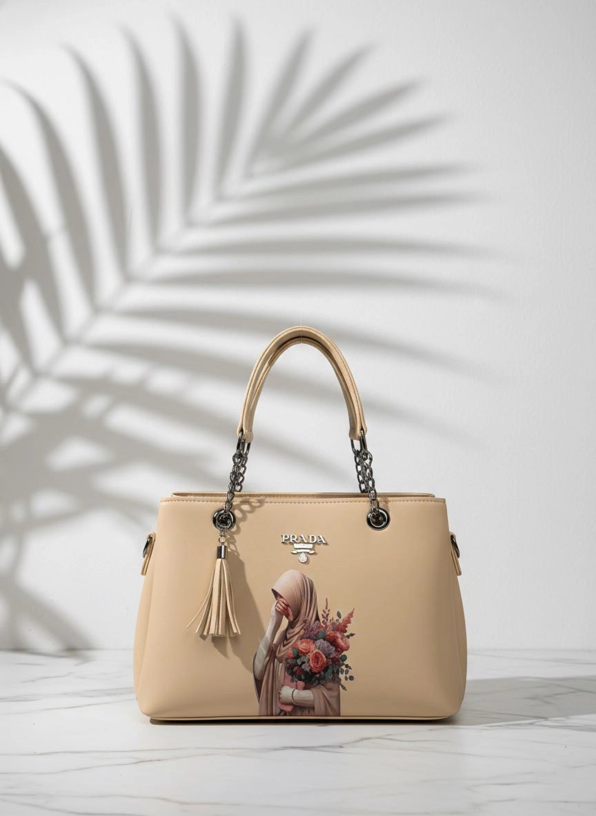 - Care Instructions: Premium leather-finish material Elegant artistic modest girl print on front Stylish chain + leather handle combination Decorative tassel charm ZS logo branding Top handle carry Detachable shoulder strap Secure zip closure