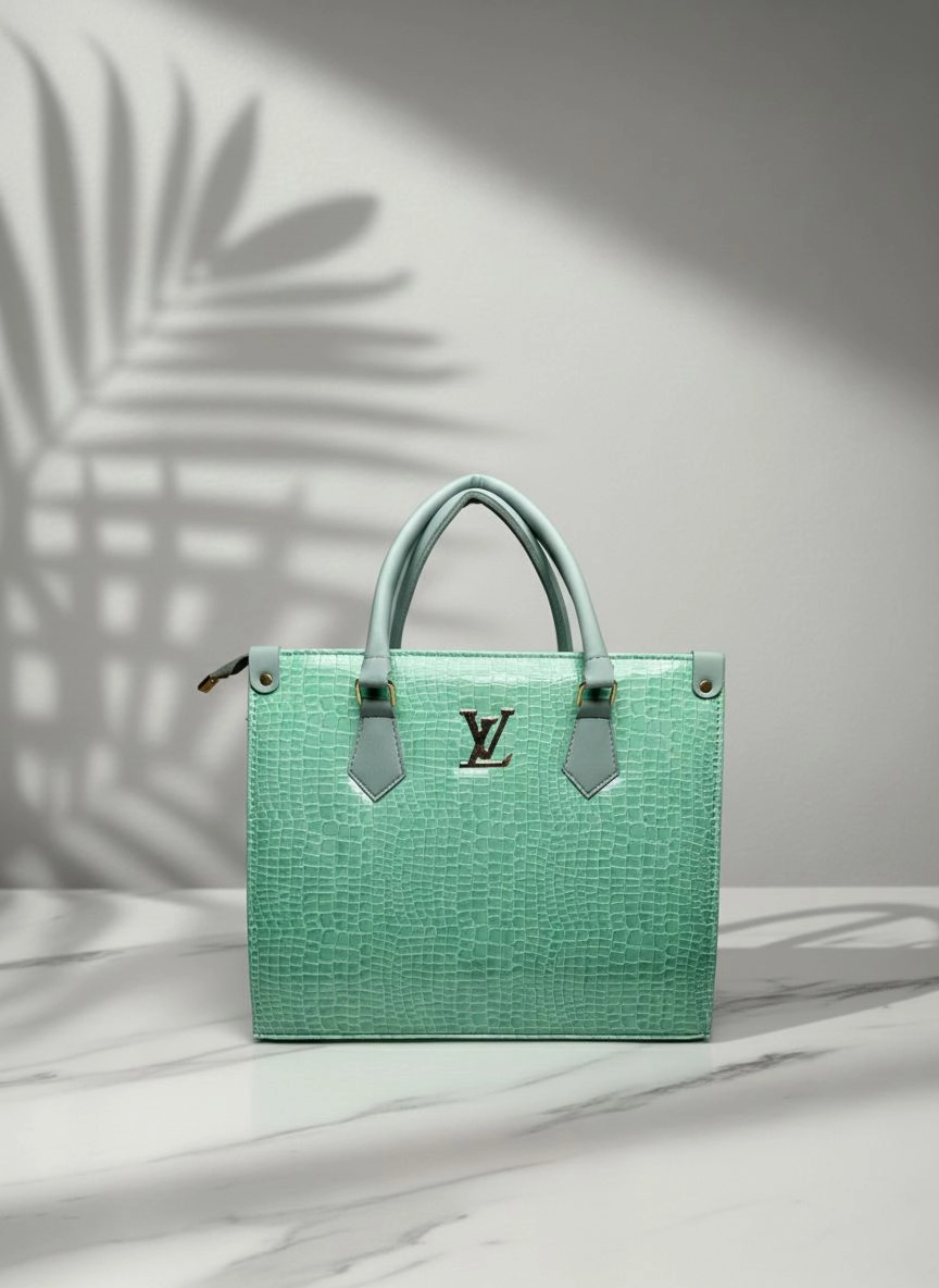 - Design Details: Premium crocodile-texture leather finish Elegant structured tote shape Luxury metallic logo on front Dual sturdy top handles Zip-top closure Spacious main compartment
